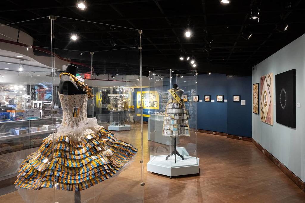 The works on display cover very different areas, but share an element: they all start from a standardized object and reconfigure it. The artist Nina Vishneva, with the MetroDress project, uses hundreds of cards to create clothes, including a wedding dress and a dance dress built entirely with recycled plastic. Nina Boesch works instead for subtraction and recomposition, cutting the tiles to create detailed mosaics depicting skylines, bridges and urban animals. VH McKenzie uses the surface of the MetroCard as a miniature canvas, painting street scenes; Thomas McKean builds architectural models inspired by New York buildings. Among the exhibited pieces are the so-called “Hype Cards” designed by Barbara Kruger for the Performa Biennial 2017, an example of how the card was also used in institutional contexts and not only spontaneous.