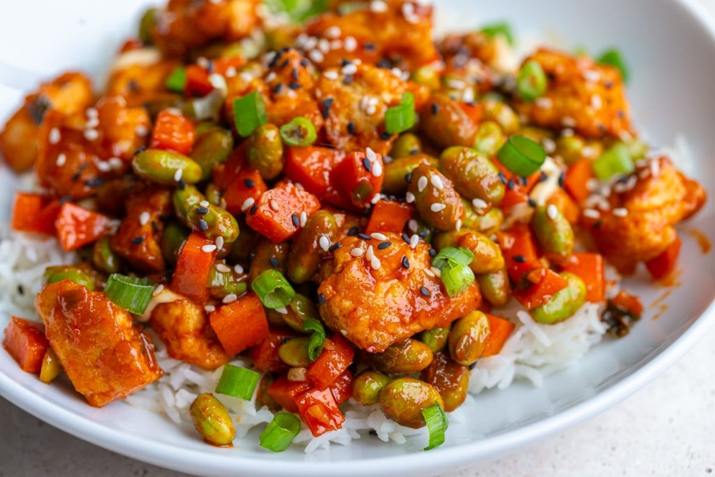 Crispy pan-seared Gochujang Tofu with optional edamame tossed in a bold, glossy gochujang sauce with optional edamame. This easy vegetarian